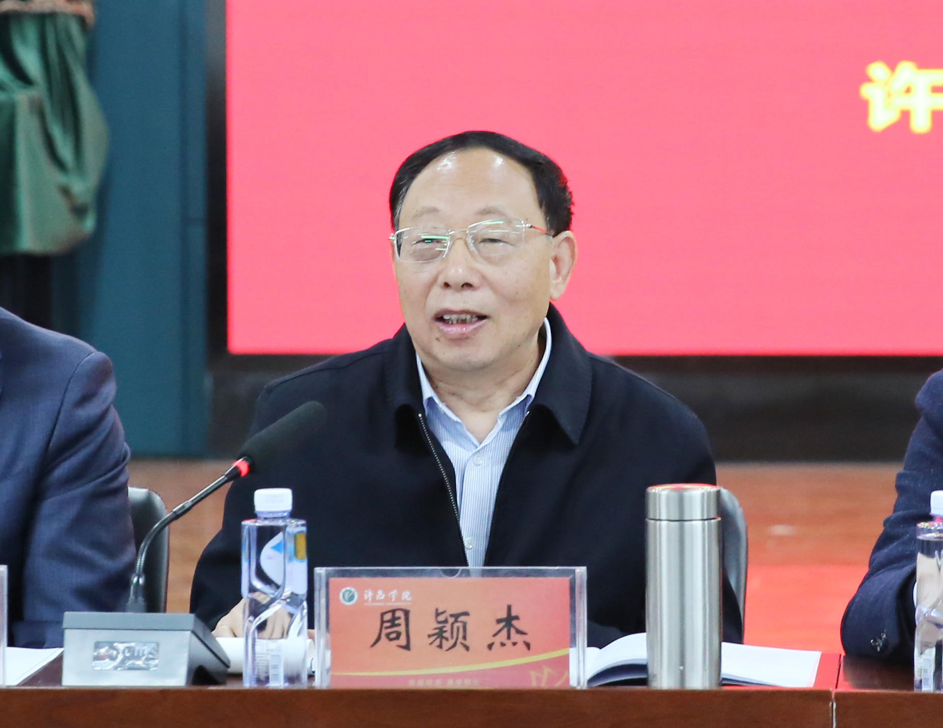 学校审核评估校内专家指导组全体成员,各二级学院(社区)相关负责人,评建办常驻工作组全体成员,教务处(教学质量监控与评估中心)、课程中心及检查组全体工作人员参加了会议。(摄影:孙旭涛)